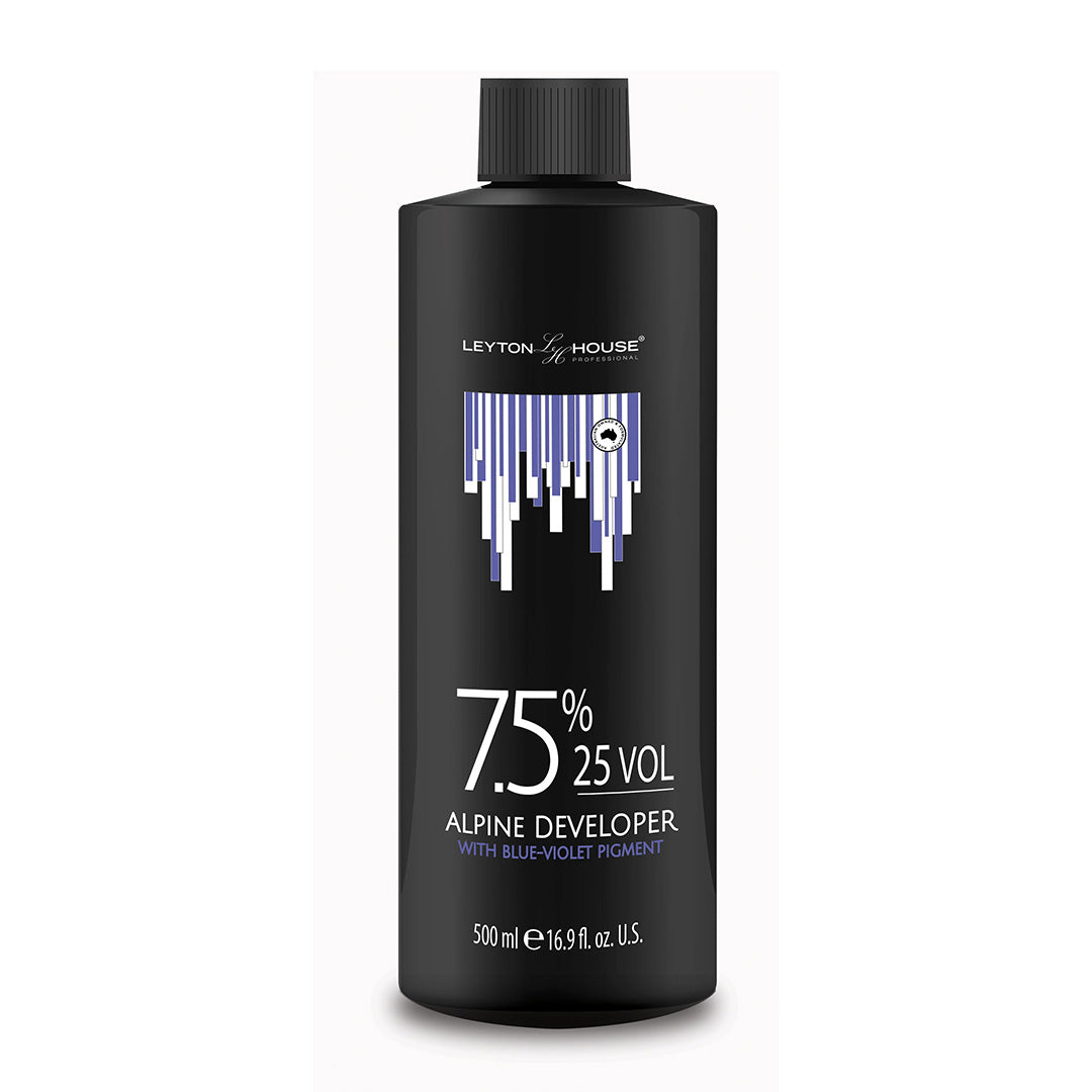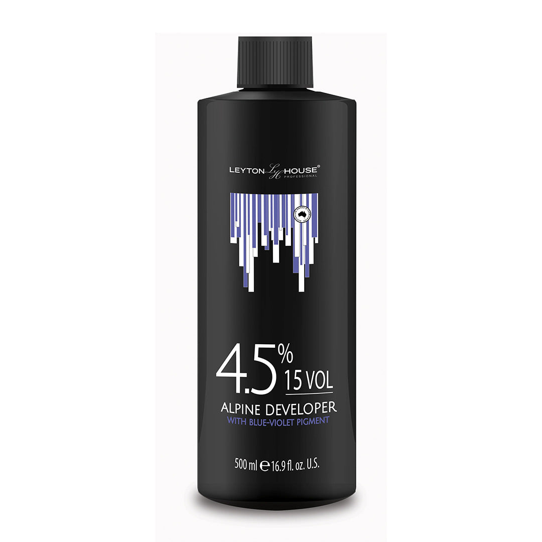 Exclusive Alpine Developers 4.5% (15vol) & 7.5% (25vol) feature a distinct blue-violet pigment designed to enhance toning effects during the lightening process and neutralising underlying warmth. |