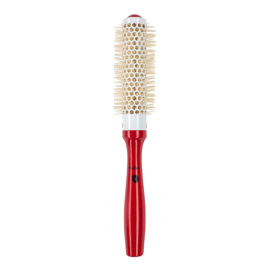 The Thermal Kiss brush contains ionic bristles and a vented metal barrel for easy, even airflow. The Thermal Kiss transfers heat from the dryer to the barrel’s surface, allowing the user to use lower heat settings while keeping the hair polished, set, and static free.
