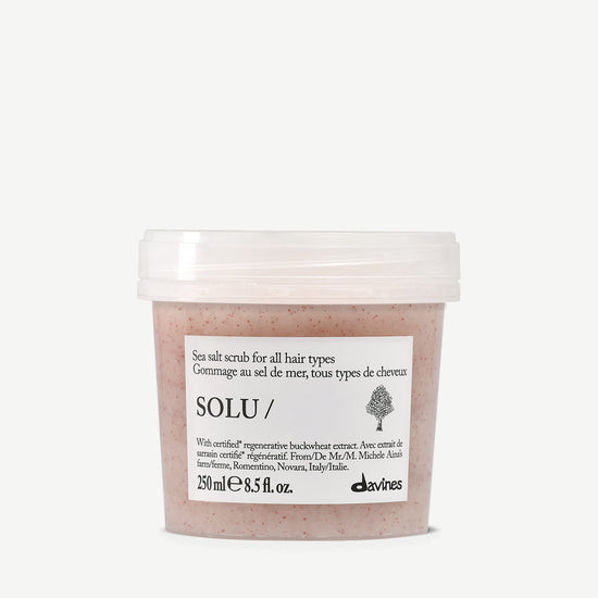 SOLU sea salt scrub is a gentle exfoliating scalp scrub for all hair types that deeply purifies and refreshes the scalp, leaving hair fresh and light. Formulated with polysaccharides, this sea salt scalp scrub removes everyday impurities and buildup while adding structure and texture to hair.