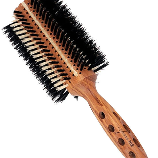 These are made from natural Teak wood with 100% natural boar bristles. The boar bristles smooth the hairs cuticle, creating more shine with a sleeker and straighter look. This brush is shaped oval rather than round for better smoothing of ends. The different sized rows of bristles create more volume at the roots while continuing to smooth the hair. Designed with the signature Y.S. PARK ventilation holes around the pins, this brush dries hair far quicker than traditional hair brush varieties. The wood handle is shaped for comfort with ventilation holes that dry hands faster for a better grip, and the neck of the handle is designed for easier and faster rolling.