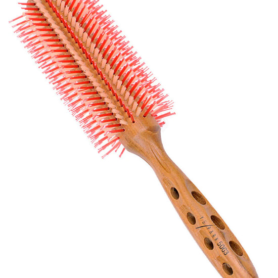 Made from natural Teak wood, and designed with both boar bristle and heat resistant nylon pins in alternating rows.