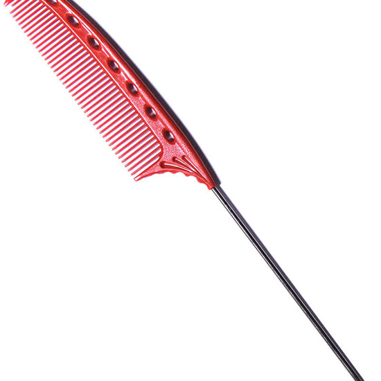 The YS-103 is great for quick tinting, weaving, and winding. This tail comb features a gradual pitch, a parting head, and is heat resistant up to 428°F (220°C). The spacing between each tooth is 10 microns shorter than the tooth before it. This gradual pitch design, combined with the parting head (the first tooth of the comb is shortened), creates equal tension through the length of the comb, allowing the user to wind hair at a quick pace.